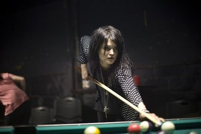 a lunática vê a luz da janela e a silhueta da mulher idosa,